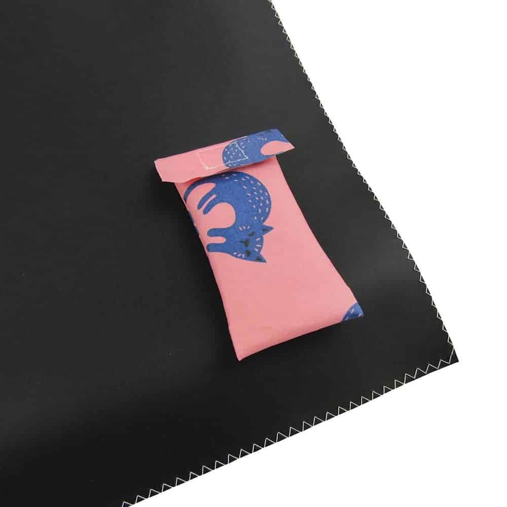 Chalkboard Placemat in Cats print. This placemat is made for kids to draw on and ties up with an attached ribbon.
