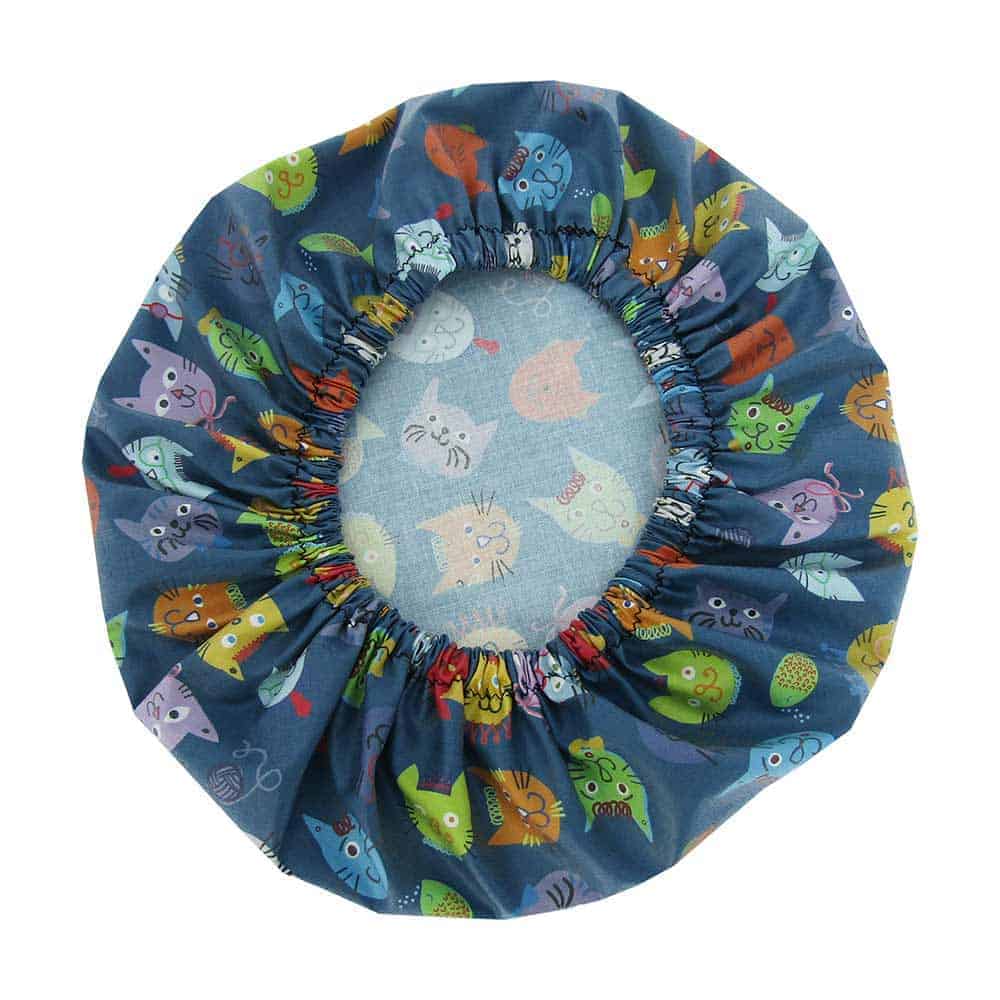 Shower Cap Cats Print made from waterproof laminated cotton.